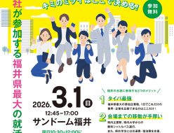 3月1日(日)にサンドーム福井にて開催する合同企業説明会に参加します!福井県・福井新聞社・福井商工会議所の合同開催となり、約300社が参加する福井県最大の就活イベントとなります。